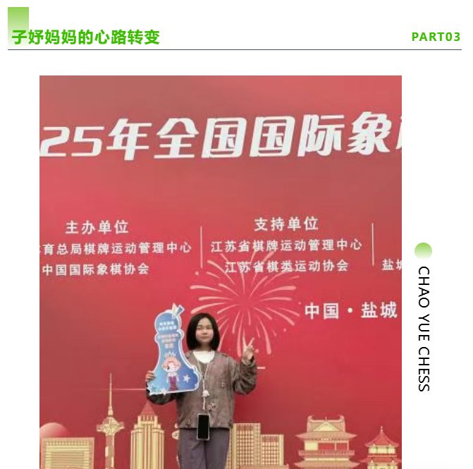 从关注胜负到陪伴成长 孩子的飞跃,离不开身后那位温暖的守护者。子妤妈妈分享了她的心路转变: “刚开始,我总是关注每一盘的输赢,关注比赛的成绩。直到那次她连输几局,在赛场外面哭着说‘再也不下了!’我第一次真正害怕——怕我无形中把‘赢棋’变成了一座她必须攀登的山,却感受不到沿途的风景。 我开始学着把目光从关注胜负的结果,转移到对局的过程上。我不再急着问‘赢了没’,而是问‘今天哪一步下得最过瘾?’我发现,当我放松下来,孩子的心态也更开阔了。 这两年,陪她比赛,也成了我的修行。看着赛场门口几乎已经走完了的家长,我在心里默念‘相信她,不着急’;看她失误后苍白的脸,我会先给她一个拥抱;看着她走出赛场后第一时间向我比‘耶’,我会告诉她休息一下准备下一盘。 未来还会有更复杂的局面、更强劲的对手在等着她。但我相信她,那个曾经因为输棋哭鼻子的小丫头,已经学会了压力之下,守住自己的坚定与顽强。作为妈妈,我会继续站在她能看到的地方,永远做那个最安静的倾听者和最坚定的鼓掌人。”