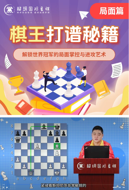 6月:超玥名师录播课新课上线 在国际象棋的进阶之路上,打谱是每一位高手的必经之路。由此,特级大师王玥、李超深入研究10位世界冠军的经典对局,精心研发录制新课——《棋王打谱秘籍》,希望通过系统化打谱训练,帮助6级以上追求突破的青少年棋手突破棋艺瓶颈。