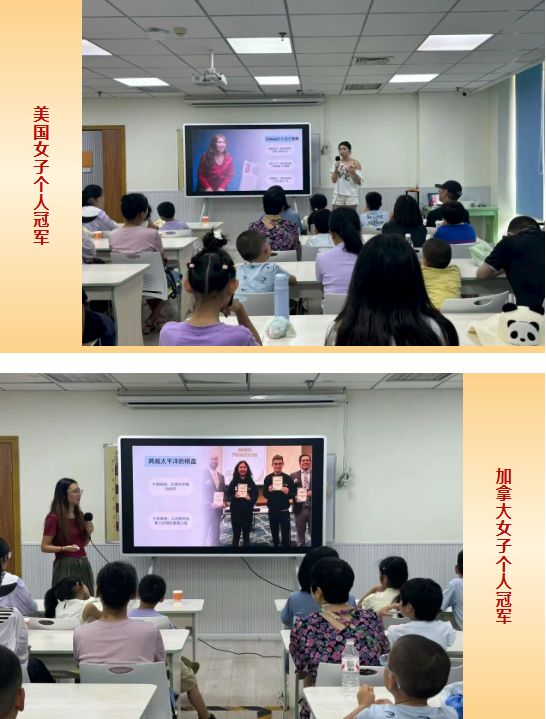 7月:超玥暑假系列交流活动开启 超玥国际象棋暑期集训期间,美国女子个人冠军Jennifer Yu和加拿大女子个人冠军李芸杉来到超玥学棋。借此机会,超玥为学员们举办了一场“从北美到世界·与美加冠军面对面”的交流活动,孩子们在提升棋艺的同时,也开阔了眼界!