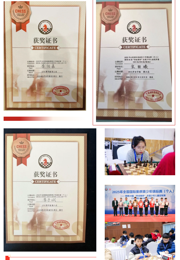 年度喜报·精彩不断 高能来袭!超玥学员2025年度盘点,拿奖到手软! 2025年,超玥学员征战国内外赛场, 共斩获24个第一名、16个第二名、17个第三名等重要奖项,实力闪耀。 还有3人荣获运动健将、一级运动员、二级运动员称号,23人晋级候补棋协大师,8人晋级棋协大师。